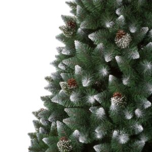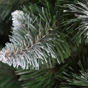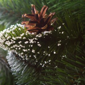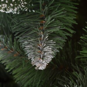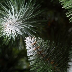 Sosna Diamentowa PVC, jest to dość zaskakująca i charakterystyczna pozycja. Drzewko wykonane jest w całości z foliowych tipsów PVC. Ciemnozielone tipsy o długich igłach , przy końcach pokryte są białą farbą oraz “szronem” – dając efekt ośnieżenia.