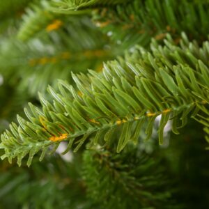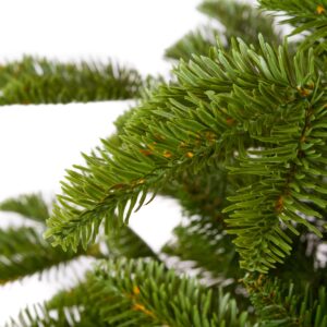 Nasze drzewko idealnie odwzorowuje naturalny kształt oraz kolor jodły. Choinka wykonana jest z kombinacji tipsów PE oraz PVC- co nadaje naturalności oraz gęstości drzewa. Na początku drzewko ma stożkowy, symetryczny pokrój, dalej jednak przybiera formę bardziej kolumnową. Igły jodły kaukaskiej są dość krótkie, w odcieniu jasnej zieleni. Warto podkreślić jak ważnym elementem tutaj są gałązki z materiałów polietynelowych, nadają one bardzo naturalnego wyglądu, kształtem niemal idealnie odwozrowują naturalne igły. Przy tym jest to materiał bezpieczny – trudnopalny, niekłując, nieopadający, łatwy w kształtowaniu oraz dekoracji drzewa.