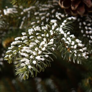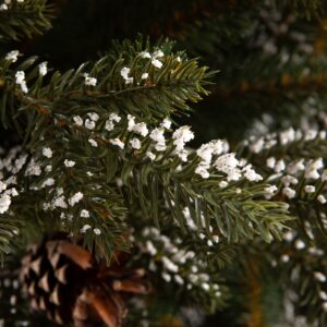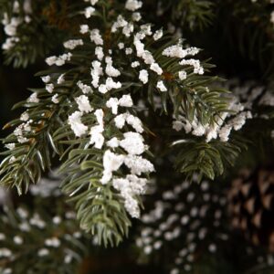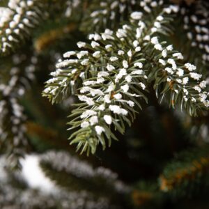 Świerk Kanadyjski Oszroniony PE- to „inna” wersja Świerku Kanadyjskiego PE. Jest to również drzewo hybrydowe, wykonane z tipsów polietylenowych usadowionych na zewnętrznej części gałęzi, oraz tipsów z folii PVC, które umieszczone są w głąb gałęzi, bliżej pnia. Taka technologia nadaje gęstości drzewu. Drzewo zachowuje kształt stożkowy, kolor igieł wpada w głęboką zieleń. Innowacyjne zastosowanie systemu snaptree ułatwia rozkładanie drzewa. Gałązki rozkładają się równomiernie wzdłuż pnia. Warto podkreślić, że jest to produkt szyty ręcznie, gałązki łączone są ze sobą za pomocą owijki- włókna technicznego.